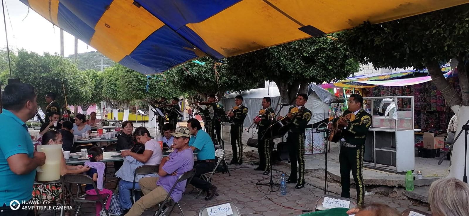 A lo largo del día, el centro del pueblo se llena de color con puestos de comida, antojitos típicos y dulces tradicionales. También se instalan algunos juegos mecánicos para la diversión de los niños y jóvenes, lo que le da un ambiente alegre y familiar.